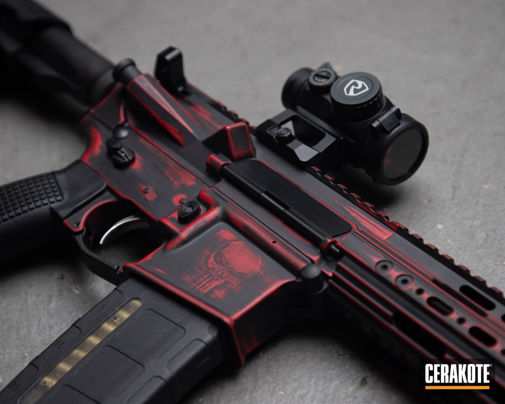 Punisher Themed Ar 15 Cerakoted Using Crimson And Armor Black Cerakote